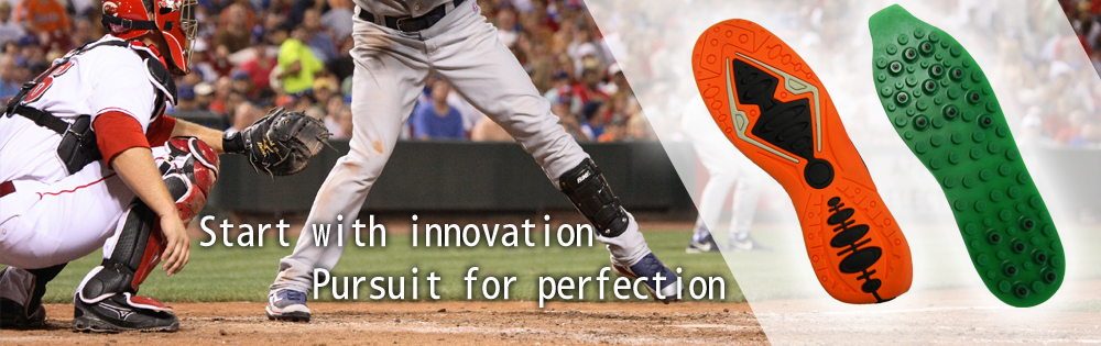 Yi Chang manufactures special spiked sole which was designed by Han-Jing Wu. Compare to the traditional spikes, the new spikes are fully integrated with outsole. The sole not only can reach both comfort and flexibility, but also do perform high shedding resistance and anti-slip functions.